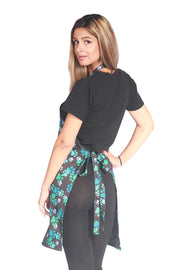 Waterproof with inside mesh lining, Blue Paw Print design styling, Bleach resistant, Hair repellent, Adjustable neck band, Black trim, 2 Front Pockets, Tie belt. One size fits most.