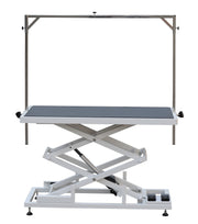 The FT-899 Accordion Electric Lift Table has an exceptionally broad lifting range from a low 12” to a height of 50”. The high lift on this table makes it a perfect option for tall groomers, helping alleviate the pain from long work days. The load capacity of this grooming table is 200lbs.