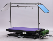 The overhead system is a unique design which has a LED light built into the overhead arm to increase visibility on the hard to see coats. The overhead mirror system is designed to add an extra angle to view your client while they are on the table. This will help your finished groom be more uniform and give a fresh view on your grooms. The mirror is adjustable to be angled so that you have an overhead view of the dog while it is on the table and a front and rear view as well.