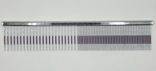 Groomer Supply HouseThe Mini aurora comb 6.25in in Length 1.18in in Height 50/50 design Purple mid-line to help grab and remove hair.
